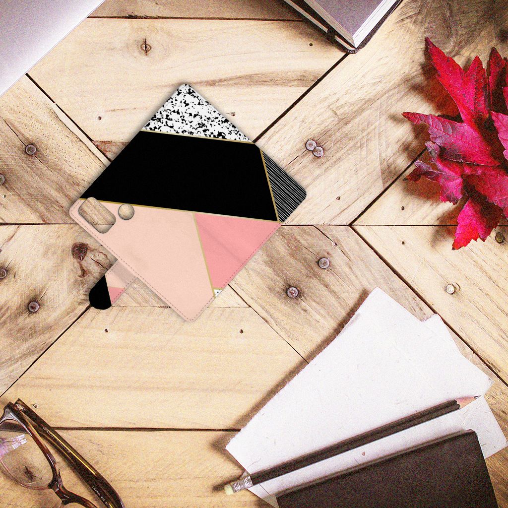 Alcatel 1S (2021) Book Case Zwart Roze Vormen