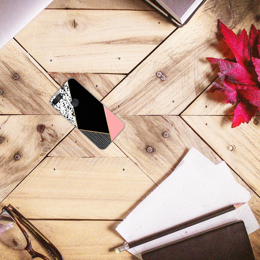 Alcatel 1S (2019) TPU Hoesje Zwart Roze Vormen