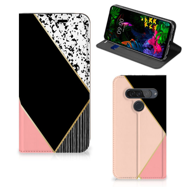 LG G8s Thinq Stand Case Zwart Roze Vormen