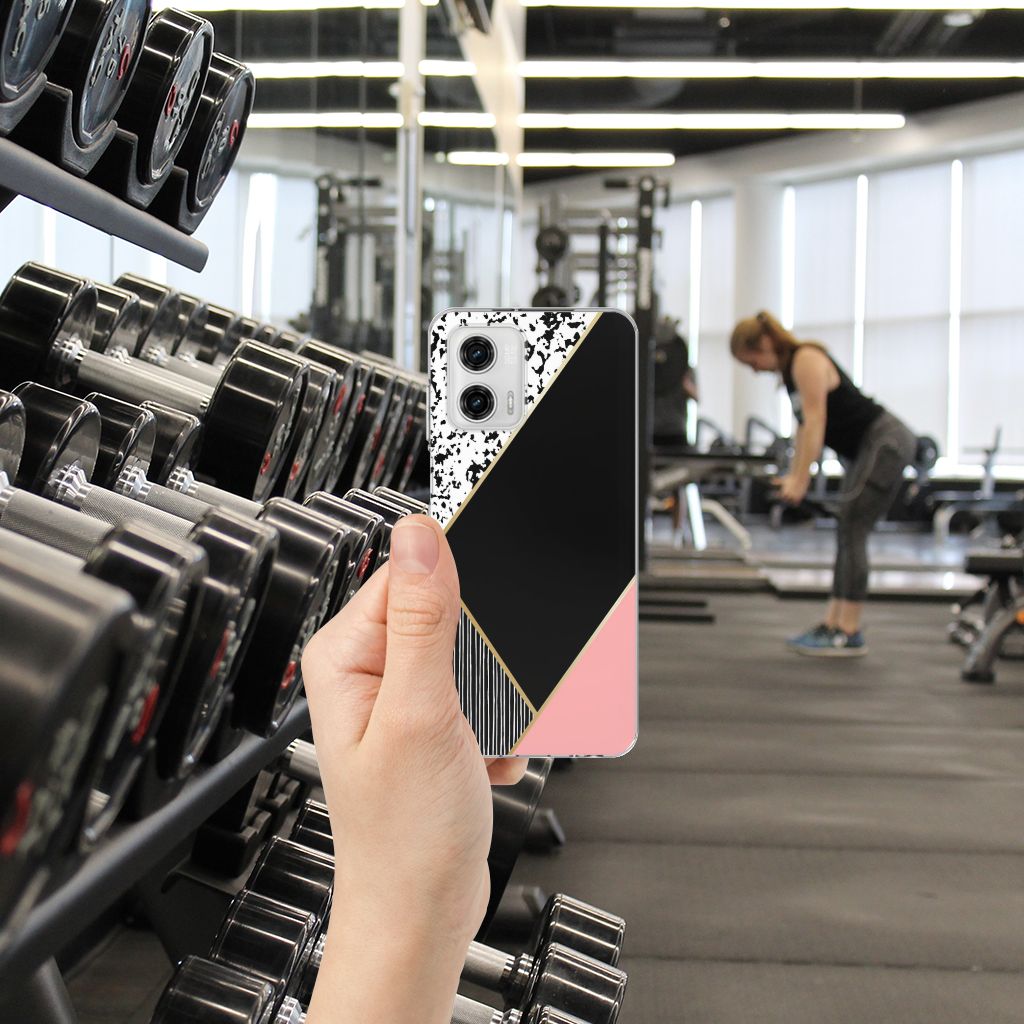 Motorola Moto G73 TPU Hoesje Zwart Roze Vormen