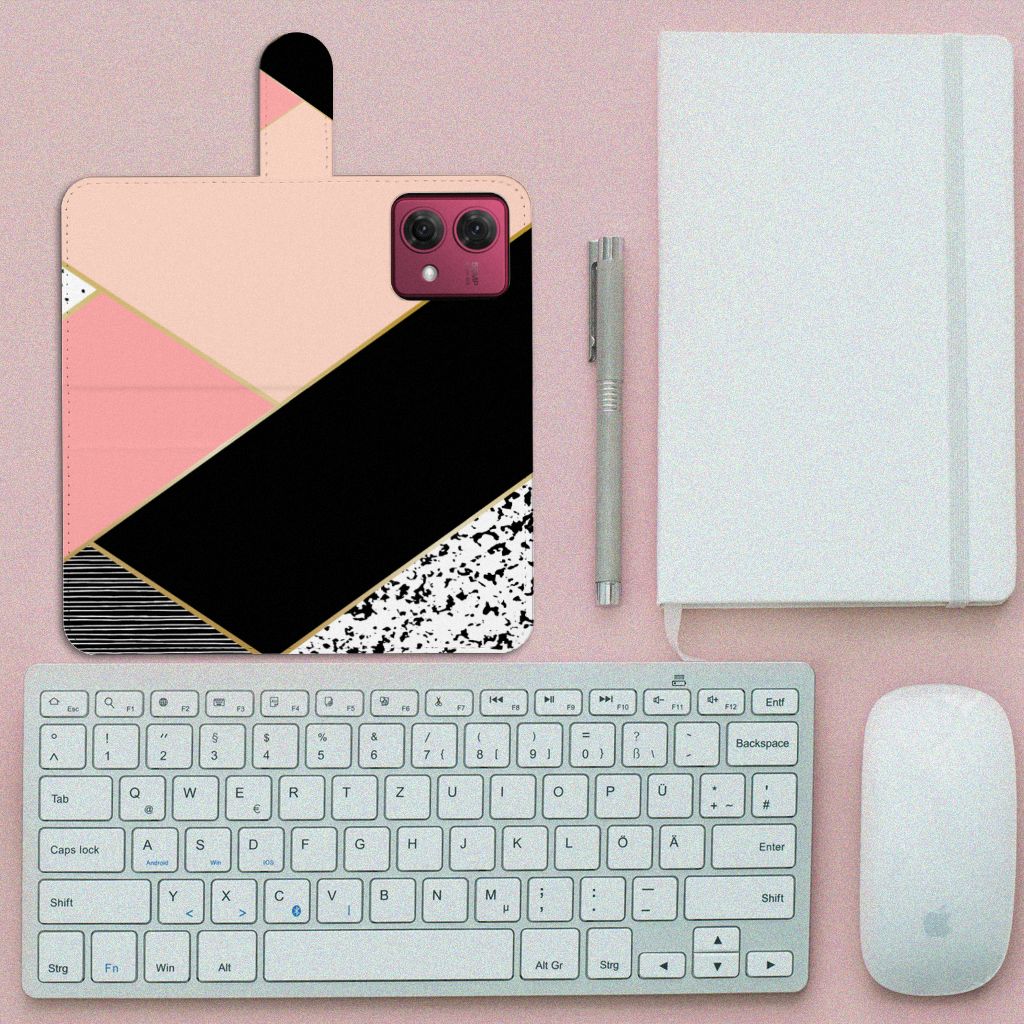 Motorola Moto G84 Book Case Zwart Roze Vormen