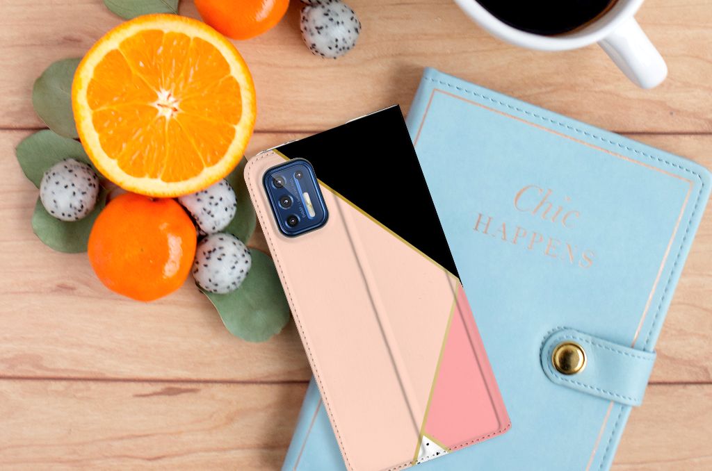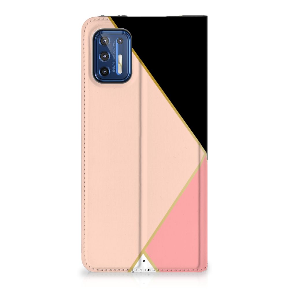 Motorola Moto G9 Plus Stand Case Zwart Roze Vormen