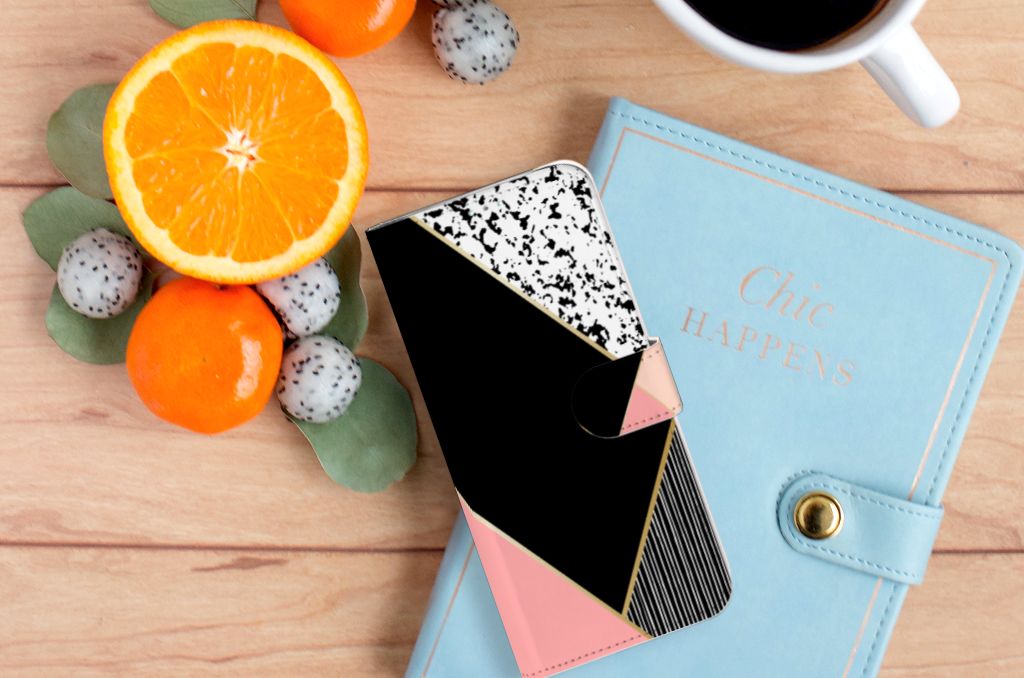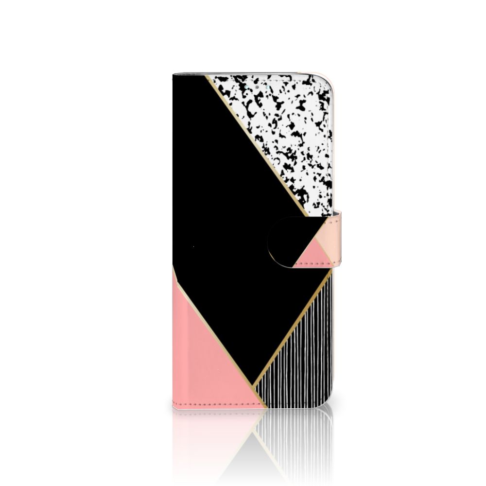 Samsung Galaxy A50 Book Case Zwart Roze Vormen