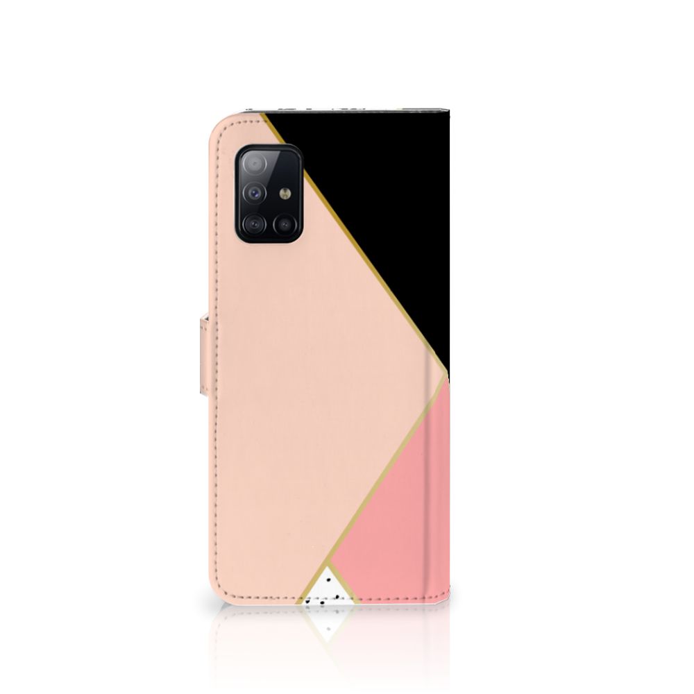 Samsung Galaxy A71 Book Case Zwart Roze Vormen