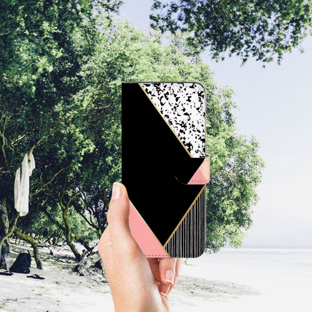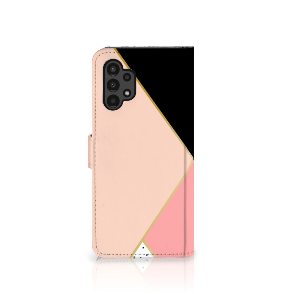 Samsung Galaxy A13 (4G) Book Case Zwart Roze Vormen