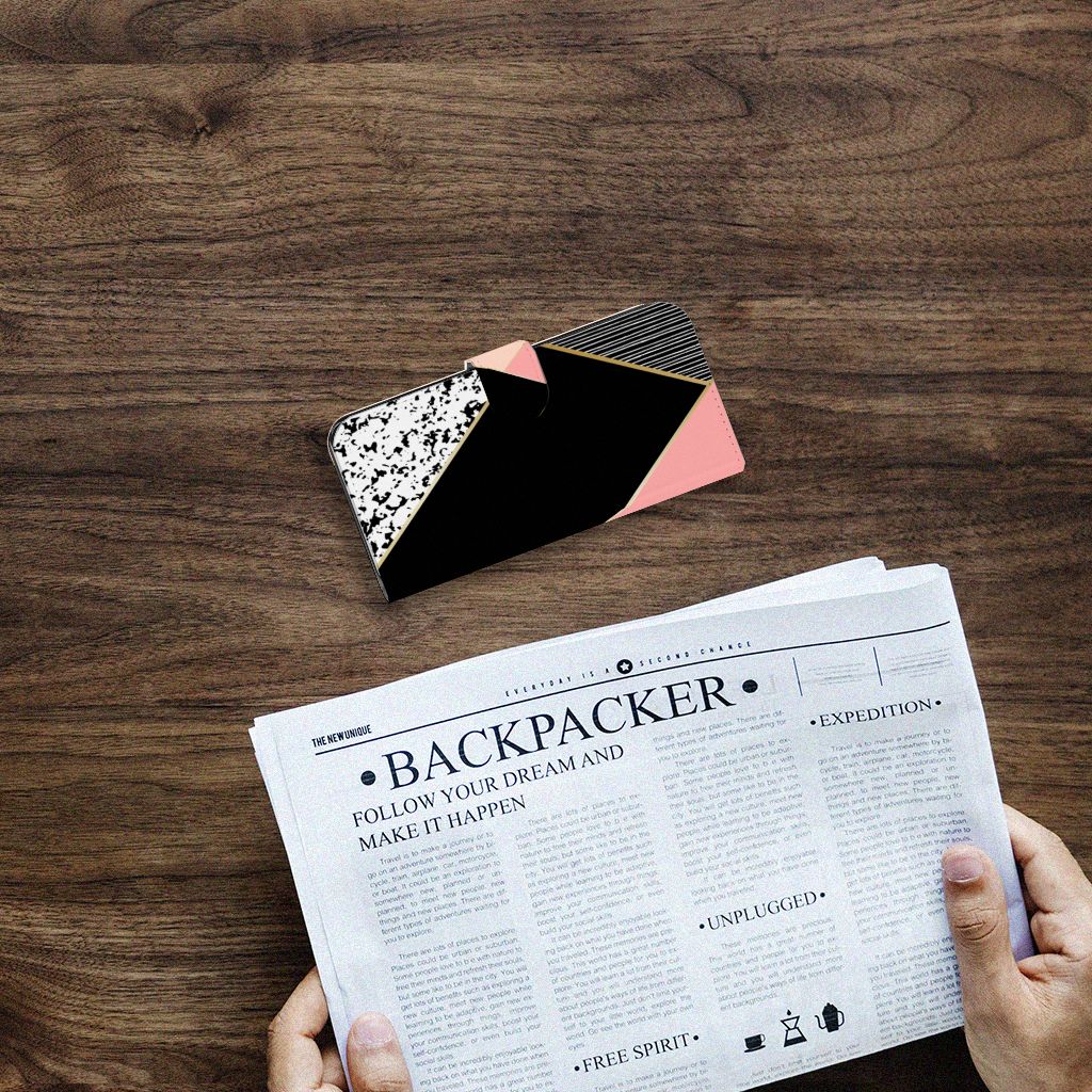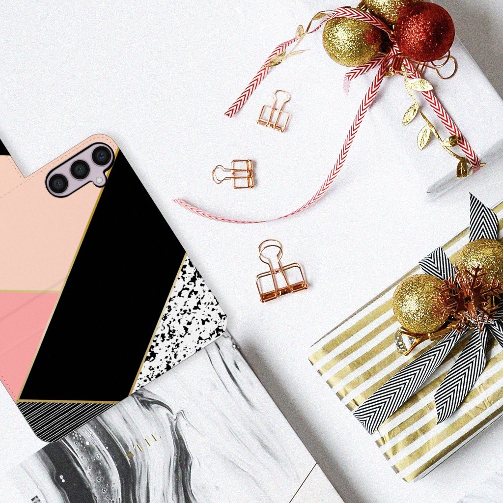 Samsung Galaxy S24 Plus Book Case Zwart Roze Vormen