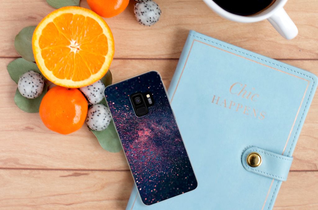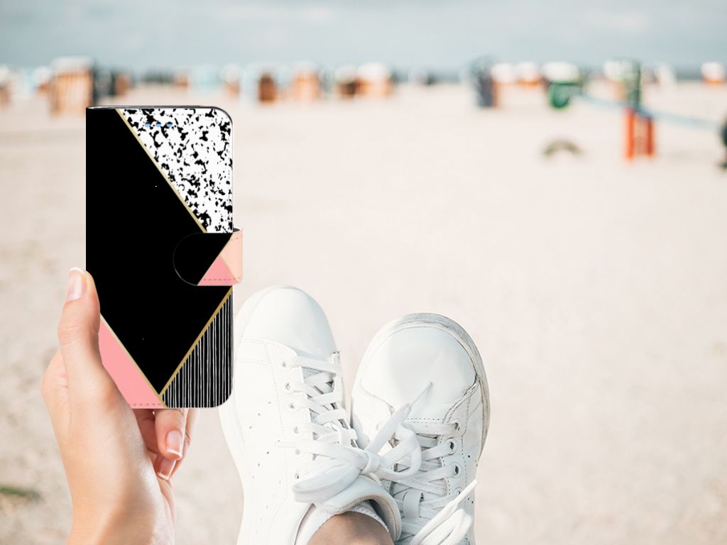 Samsung Galaxy S9 Book Case Zwart Roze Vormen