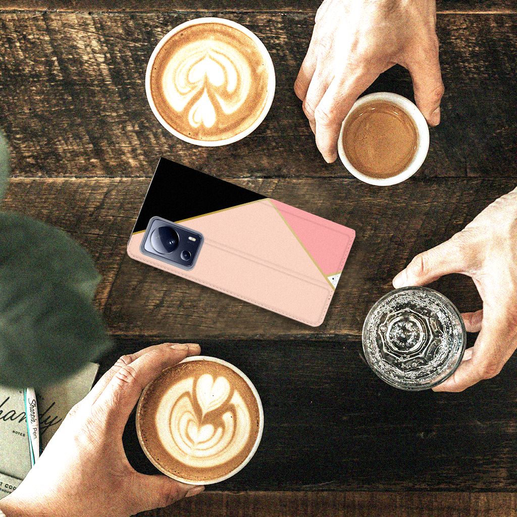 Xiaomi 13 Lite Stand Case Zwart Roze Vormen