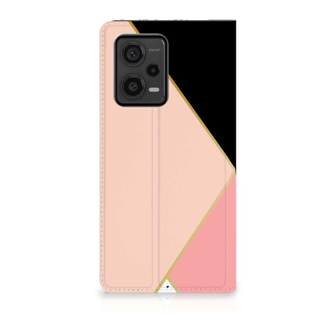 Xiaomi Redmi Note 12 Pro Plus Stand Case Zwart Roze Vormen