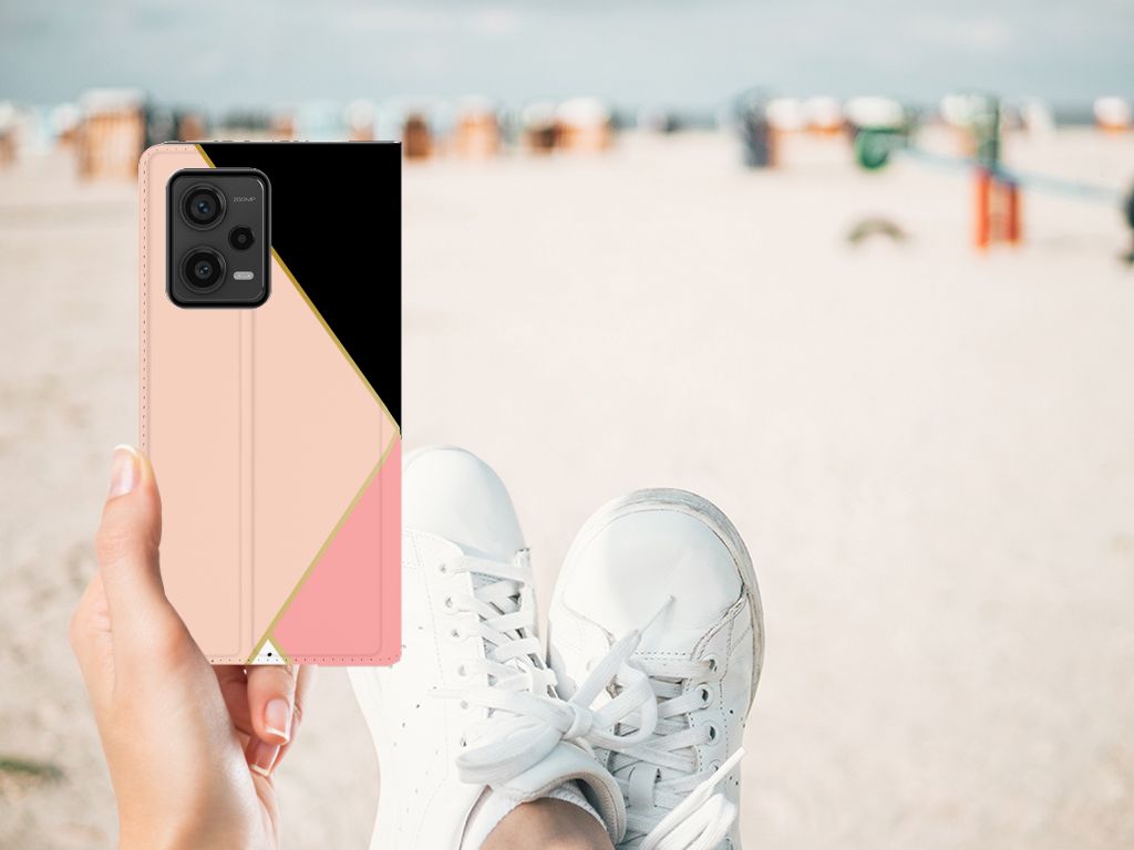 Xiaomi Redmi Note 13 Pro Plus Book Case Zwart Roze Vormen