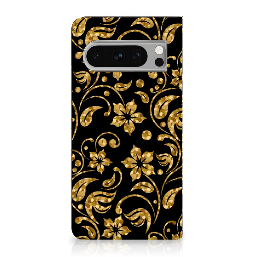 Google Pixel 8 Pro Smart Cover Gouden Bloemen