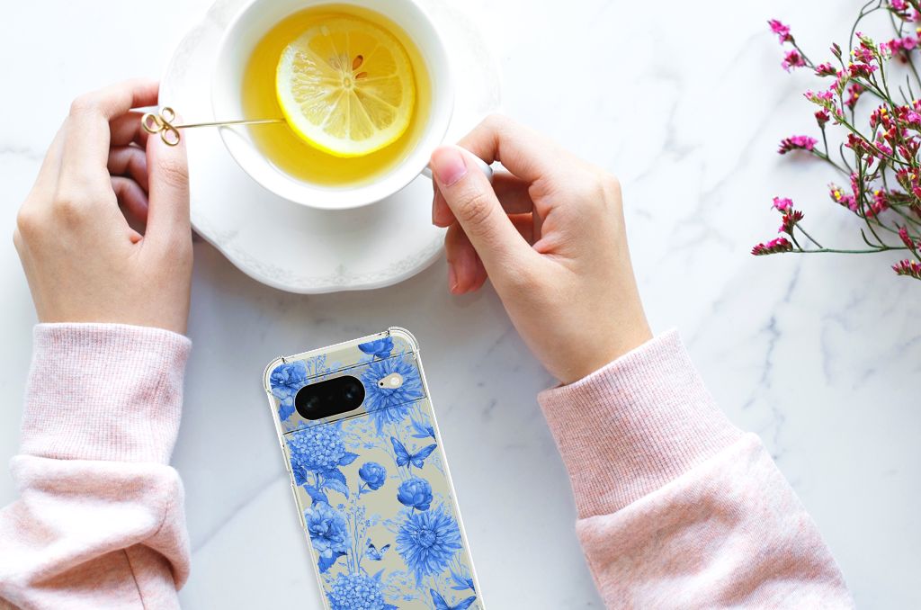 TPU Case voor Google Pixel 8 Flowers Blue
