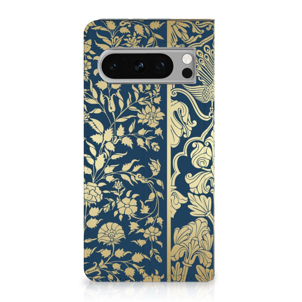 Google Pixel 7 Pro Smart Cover Gouden Bloemen