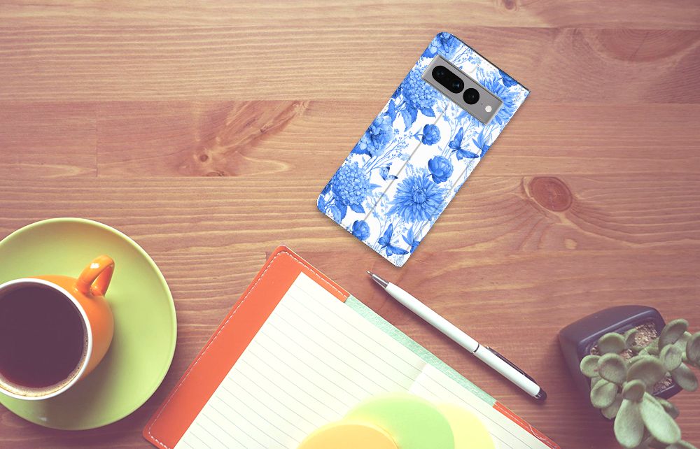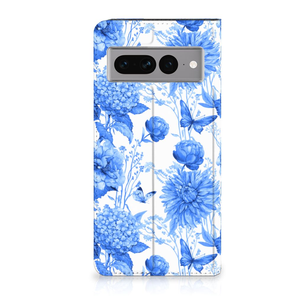 Smart Cover voor Google Pixel 7 Pro Flowers Blue