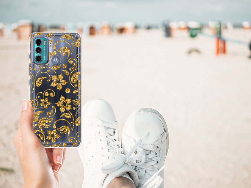 Motorola Moto G60 TPU Case Gouden Bloemen