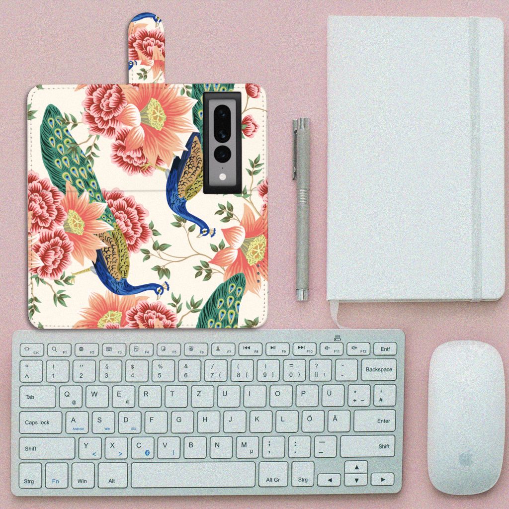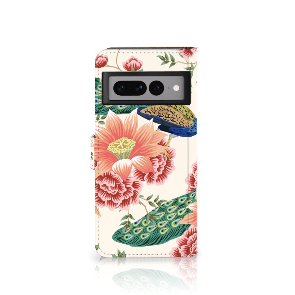 Telefoonhoesje met Pasjes voor Google Pixel 7 Pro Pink Peacock