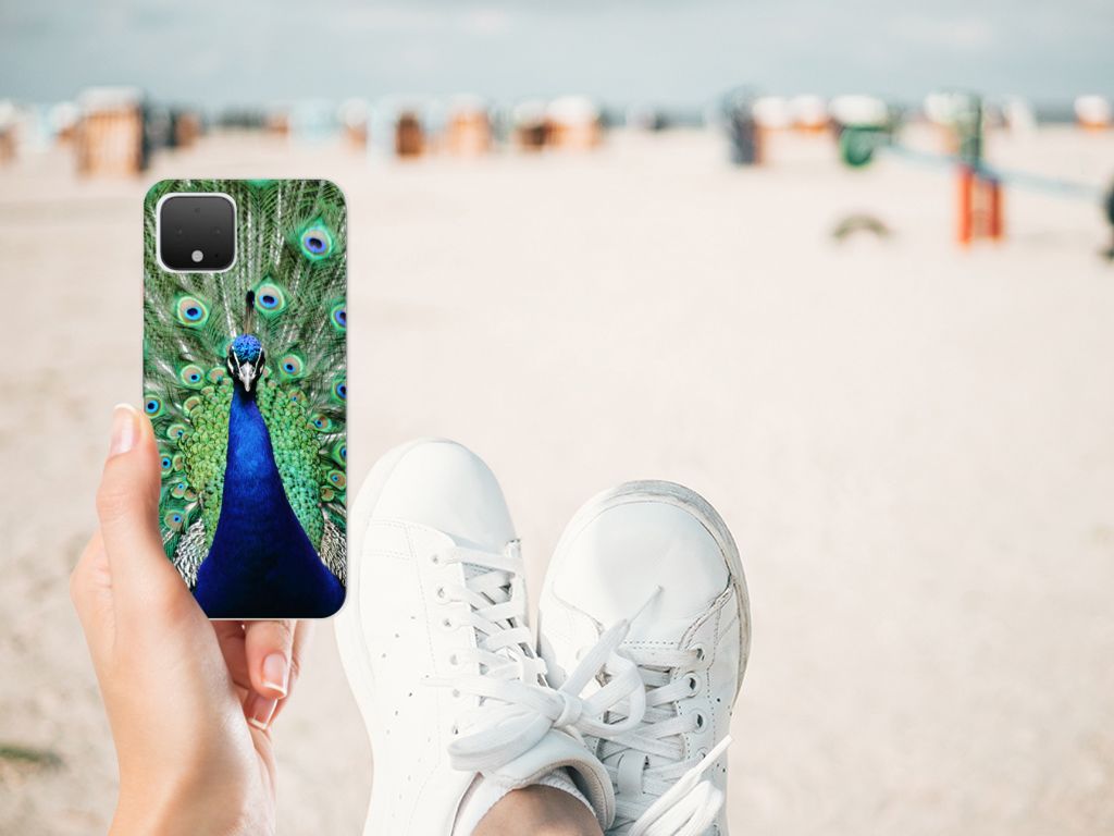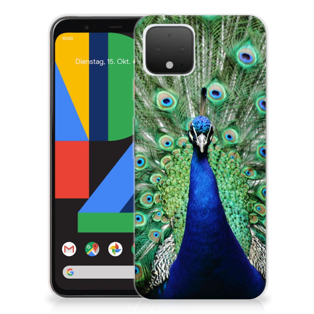 Google Pixel 4 TPU Hoesje Pauw met Bloemen