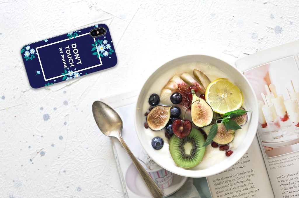 Apple iPhone X | Xs Silicone-hoesje Flowers Blue DTMP