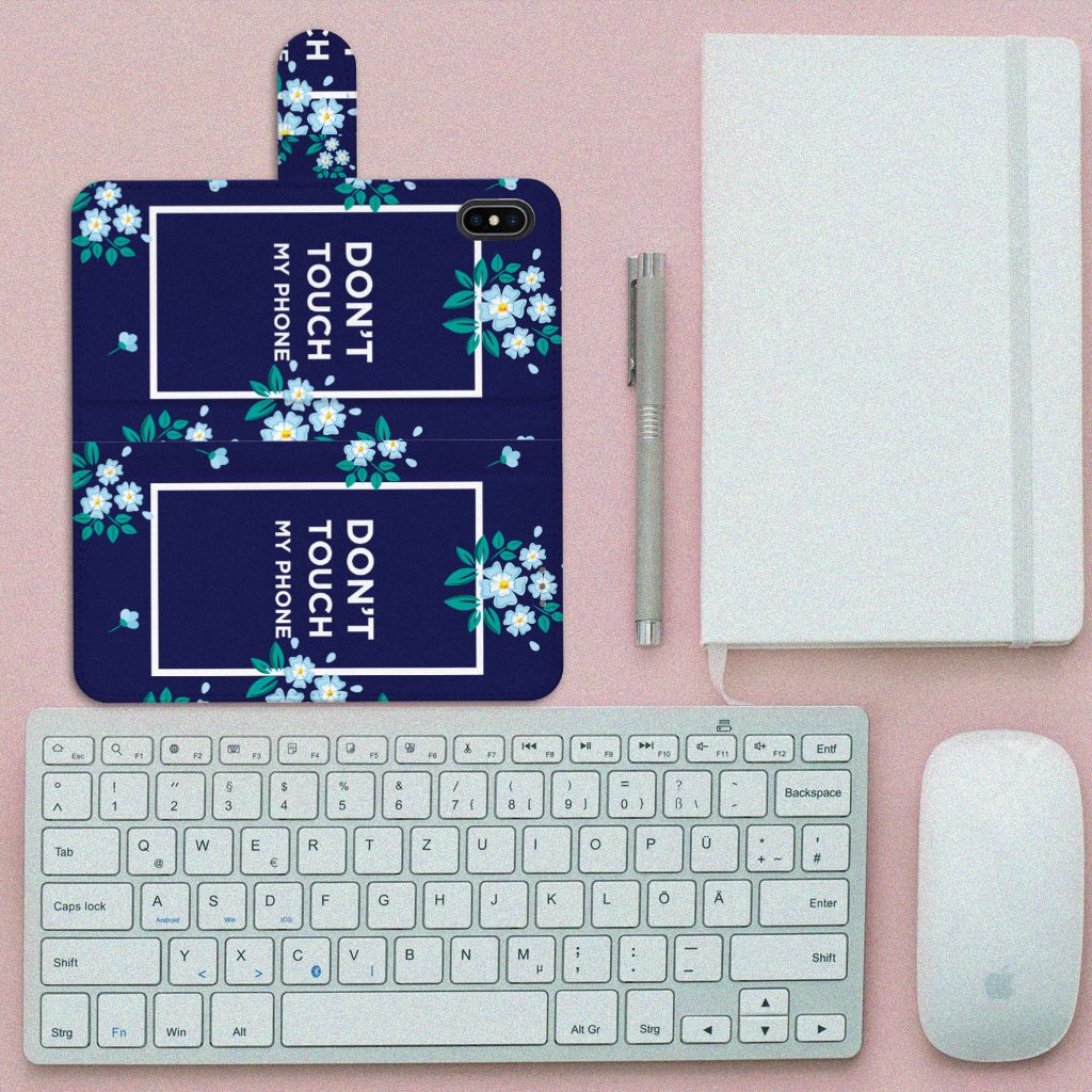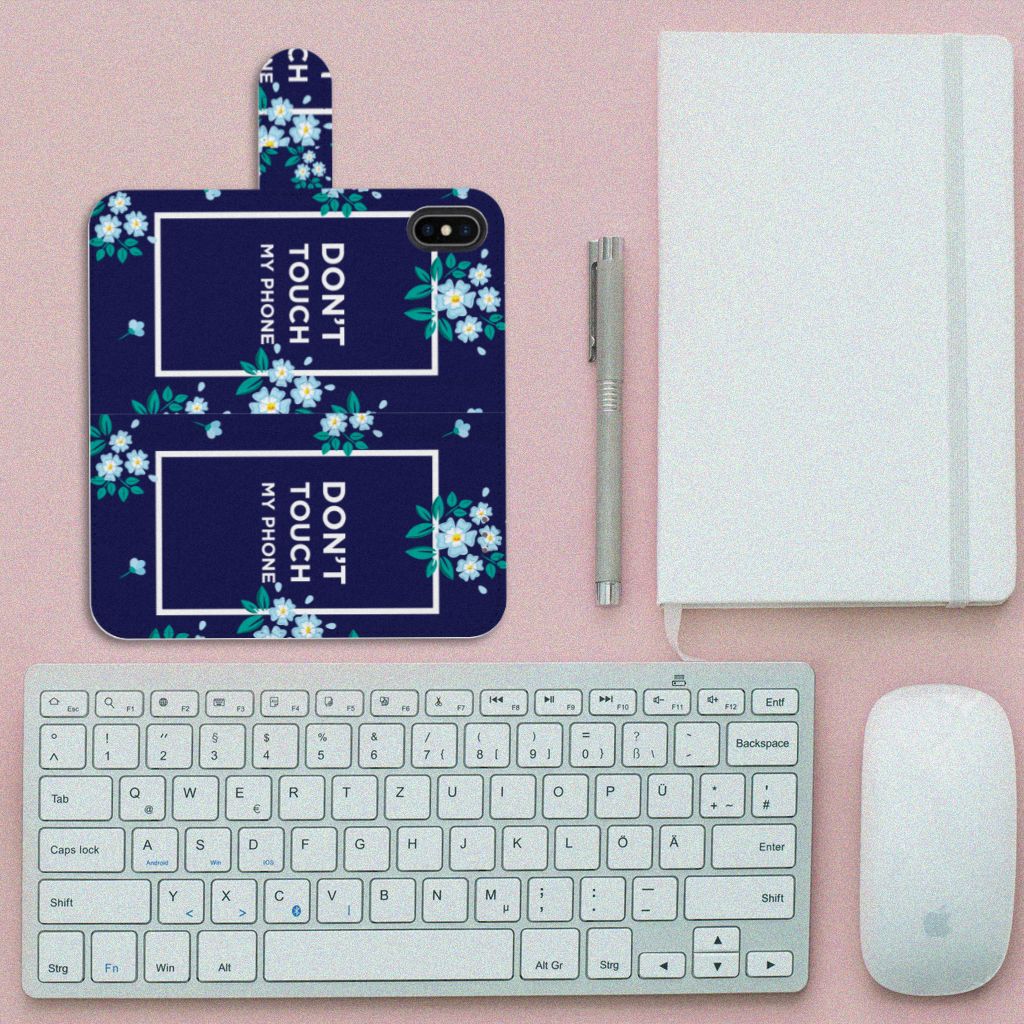 Apple iPhone Xs Max Portemonnee Hoesje Flowers Blue DTMP