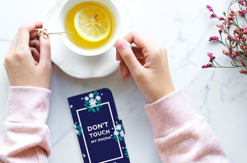 iPhone 15 Portemonnee Hoesje Flowers Blue DTMP