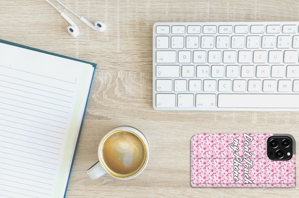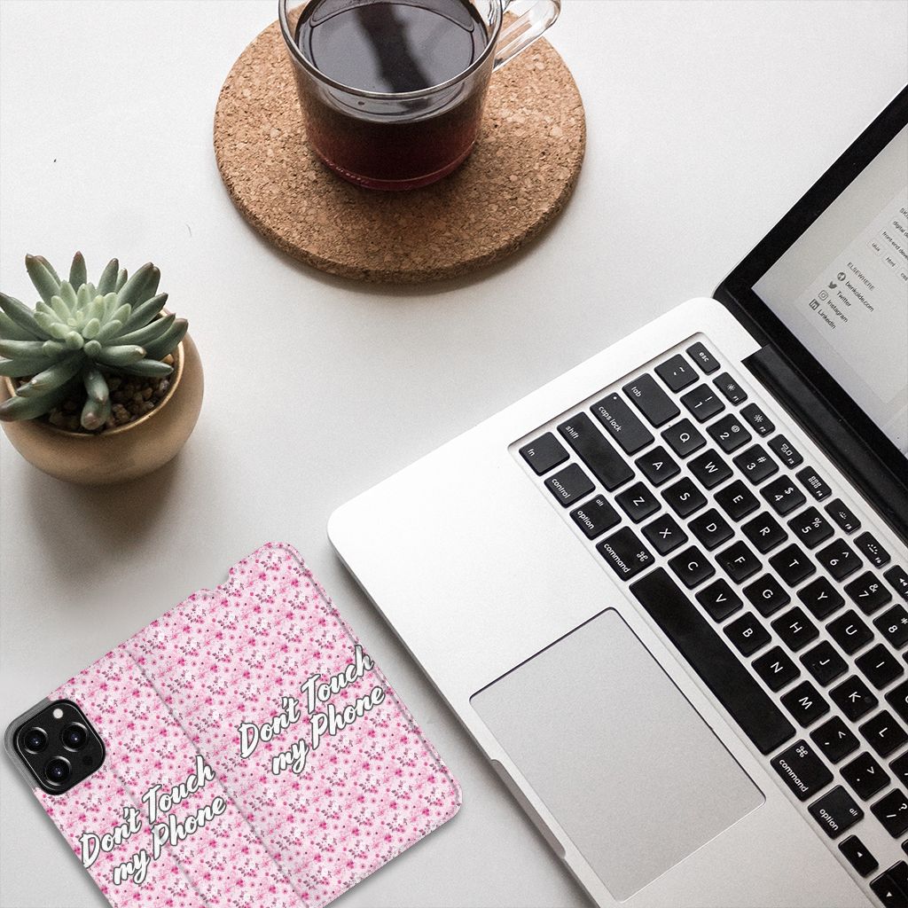 iPhone 14 Pro Portemonnee Hoesje Flowers Pink DTMP