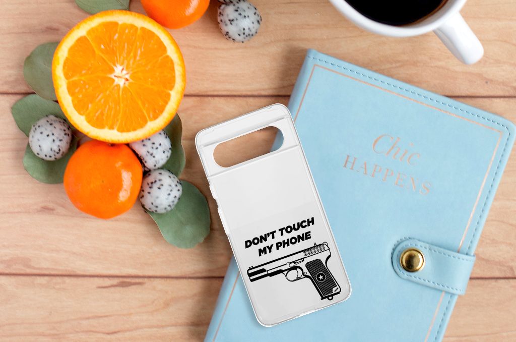 Google Pixel 6A Silicone-hoesje Gun Don't Touch My Phone