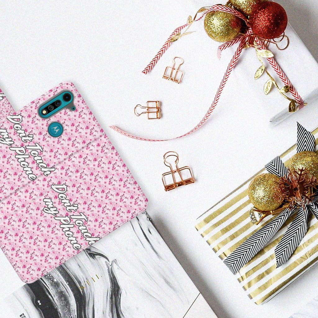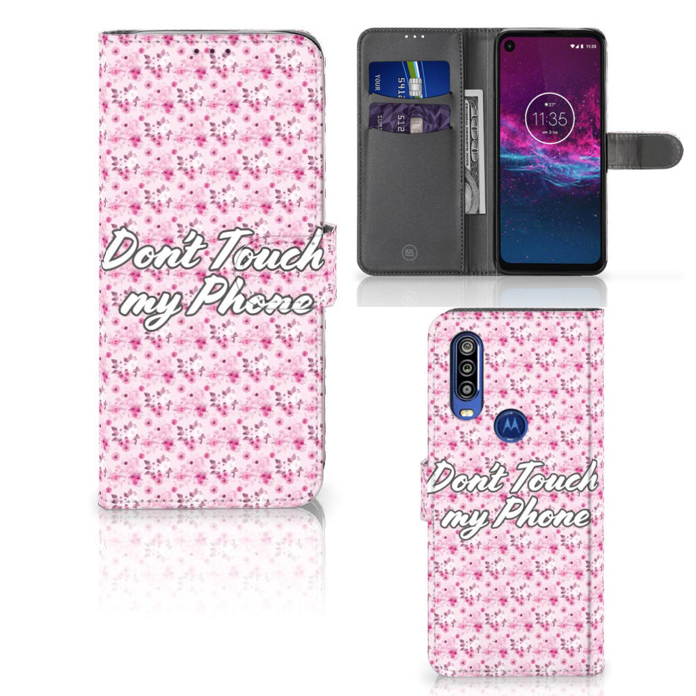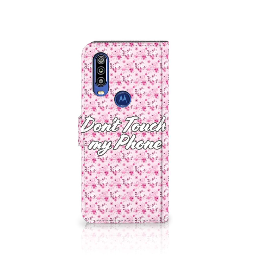 Motorola One Action Portemonnee Hoesje Flowers Pink DTMP
