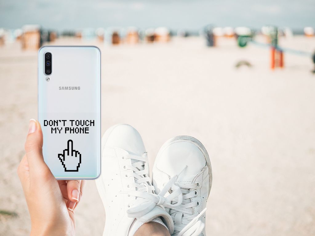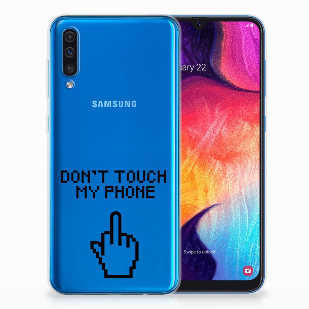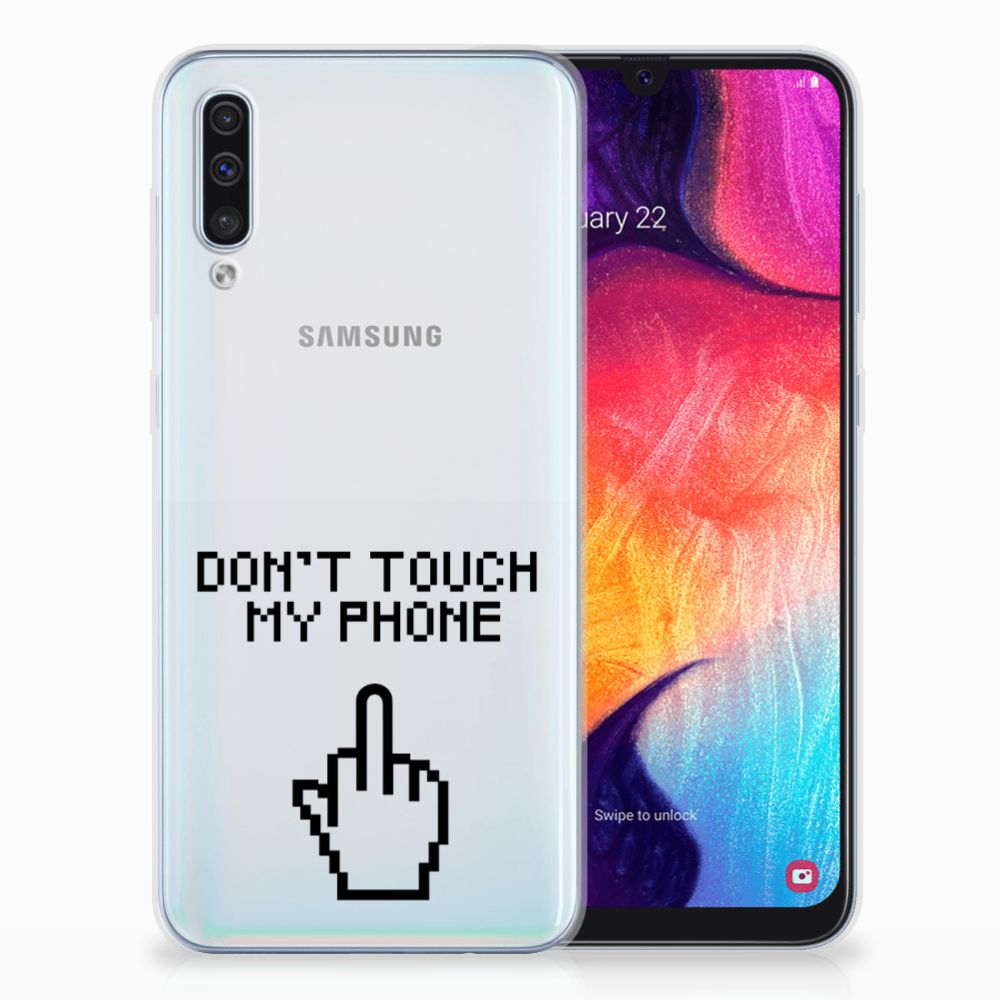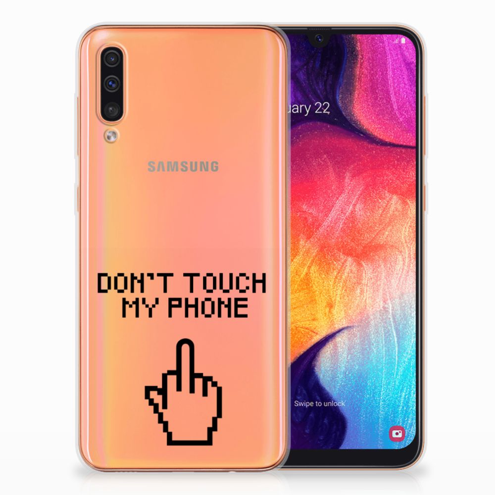 Samsung Galaxy A50 Silicone-hoesje Finger Don't Touch My Phone