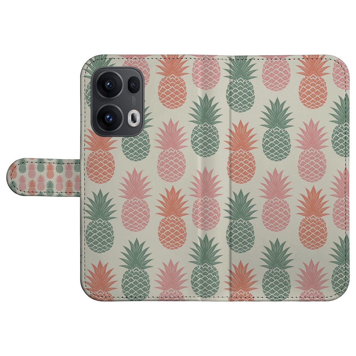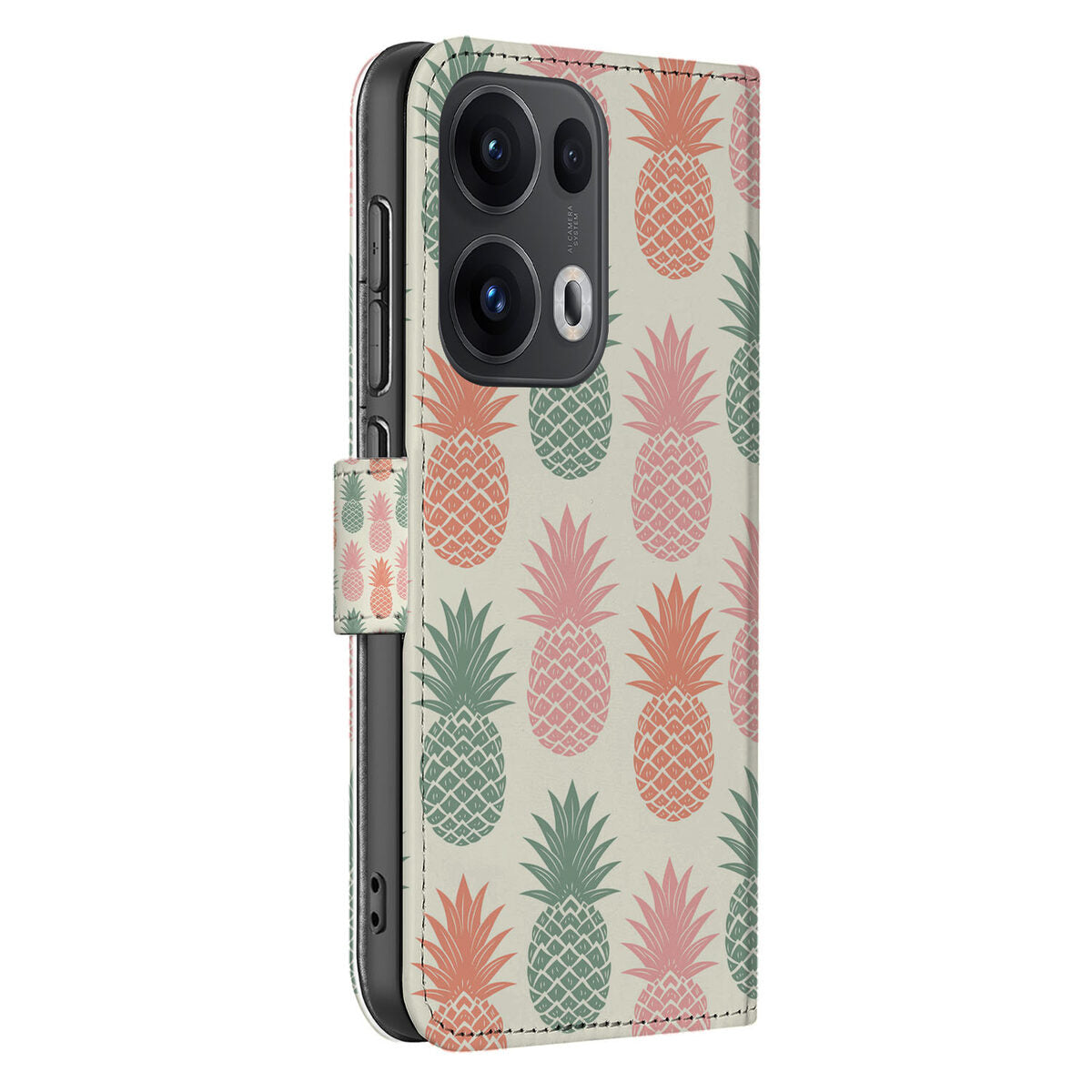 OPPO Reno 13 Pro Book Case ‘Ananas’ – Stijlvol Hoesje met Pasjeshouder