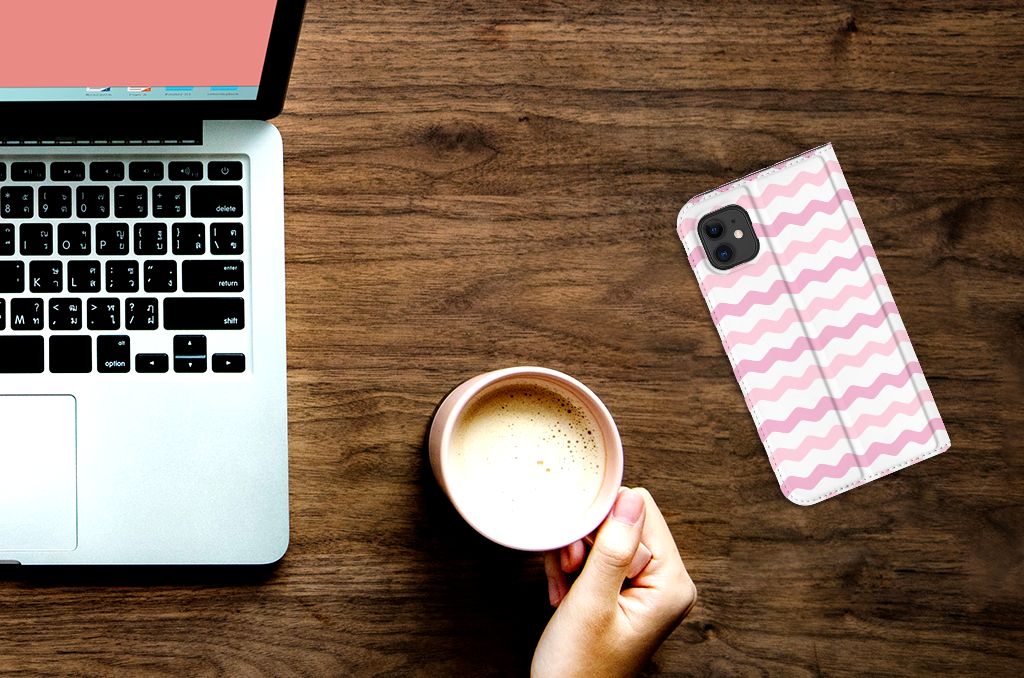 Apple iPhone 11 Hoesje met Magneet Waves Roze