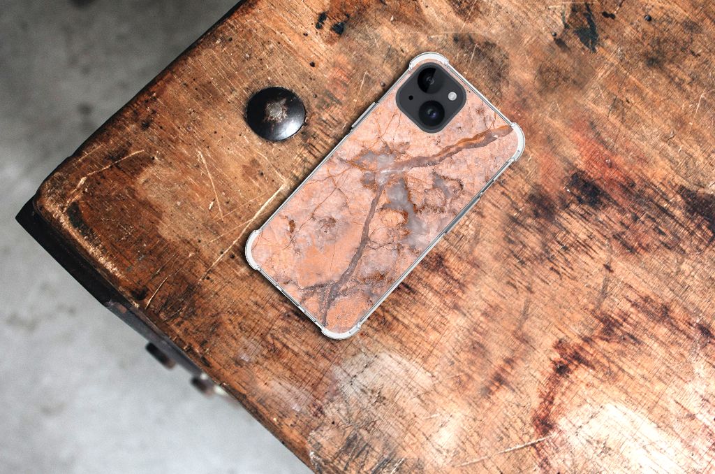 iPhone 15 Anti-Shock Hoesje Marmer Oranje
