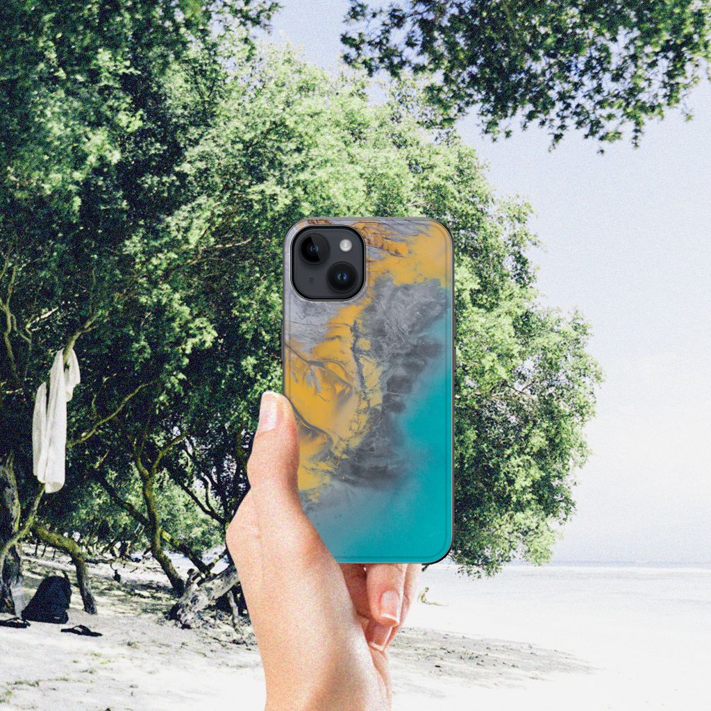 iPhone 15 Marmeren Print Telefoonhoesje Marble Blue Gold