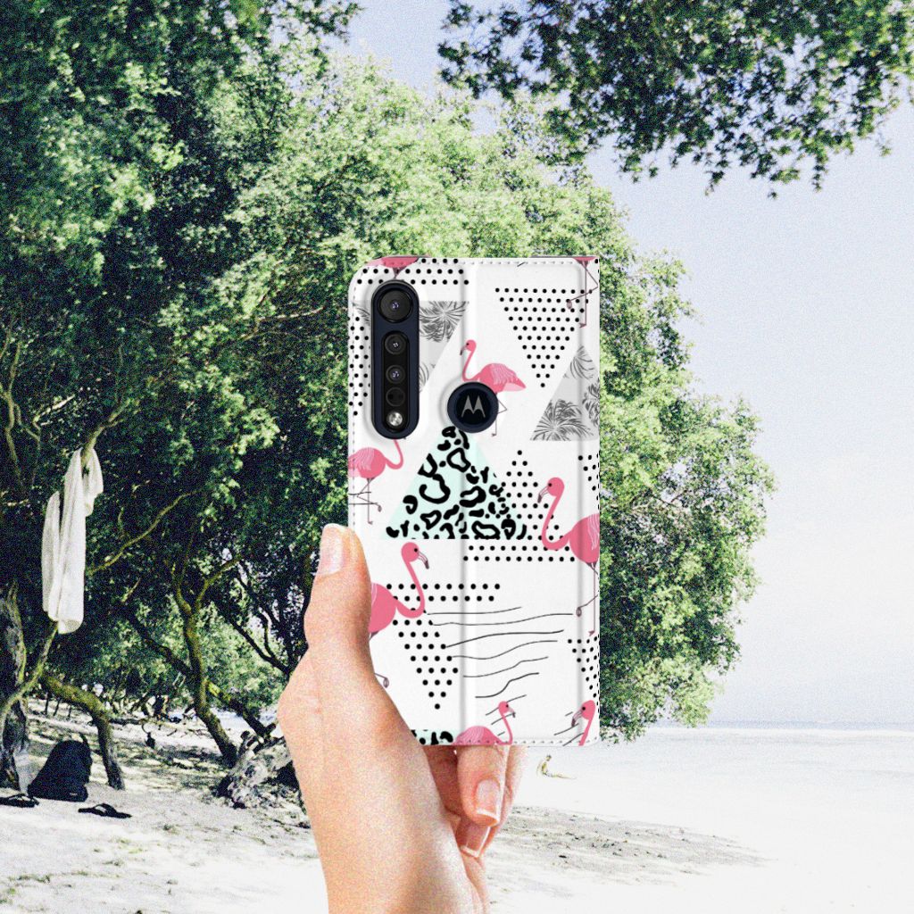 Motorola G8 Plus Hoesje maken Flamingo Triangle