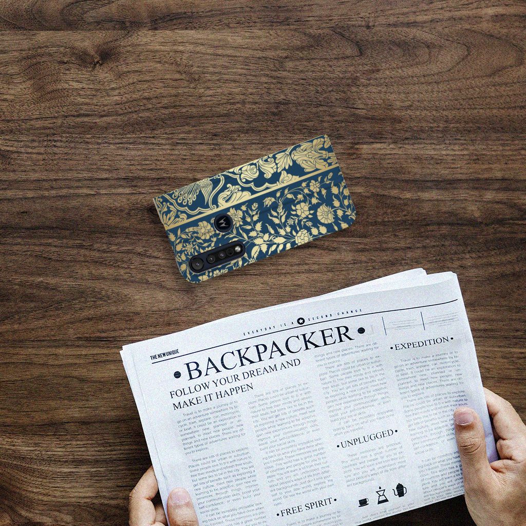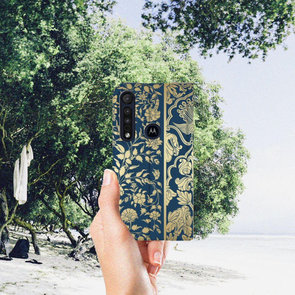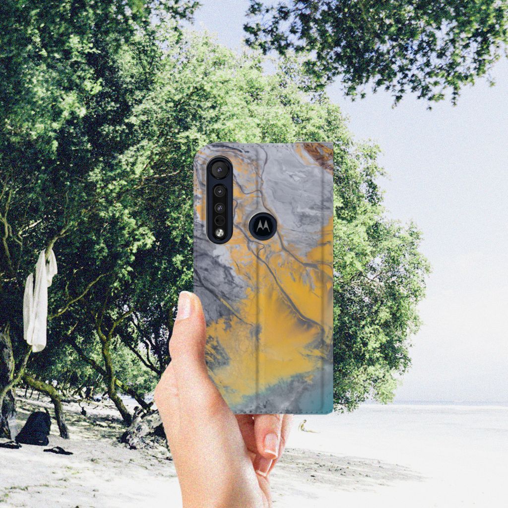 Motorola G8 Plus Standcase Marble Blue Gold