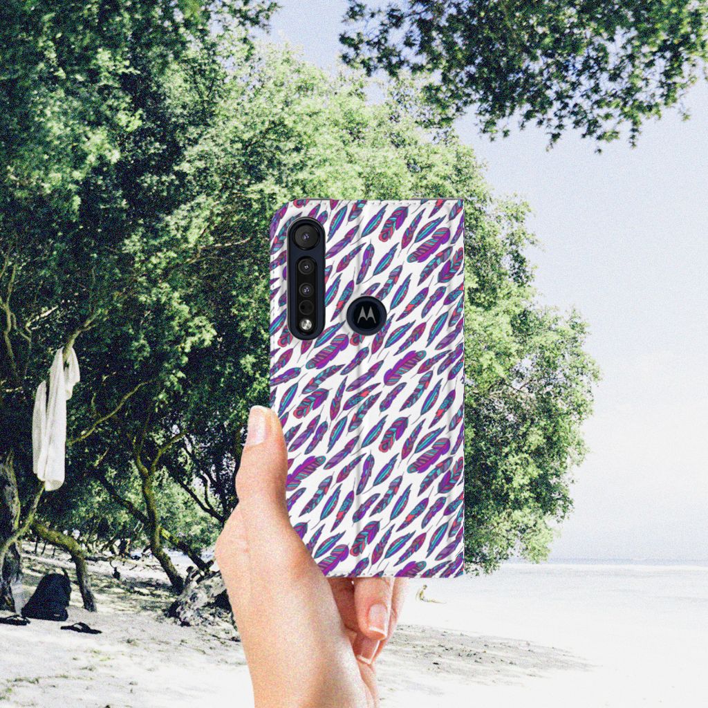 Motorola G8 Plus Hoesje met Magneet Feathers Color