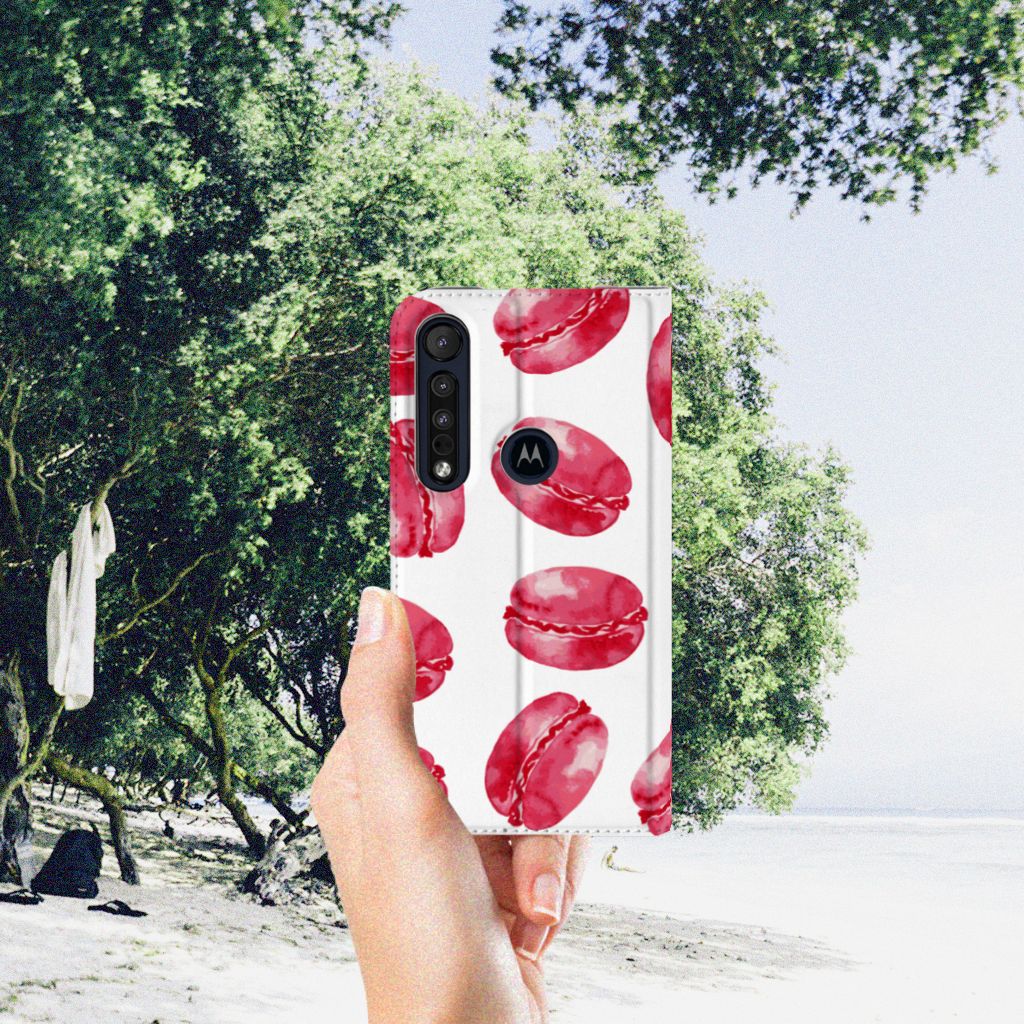 Motorola G8 Plus Flip Style Cover Pink Macarons