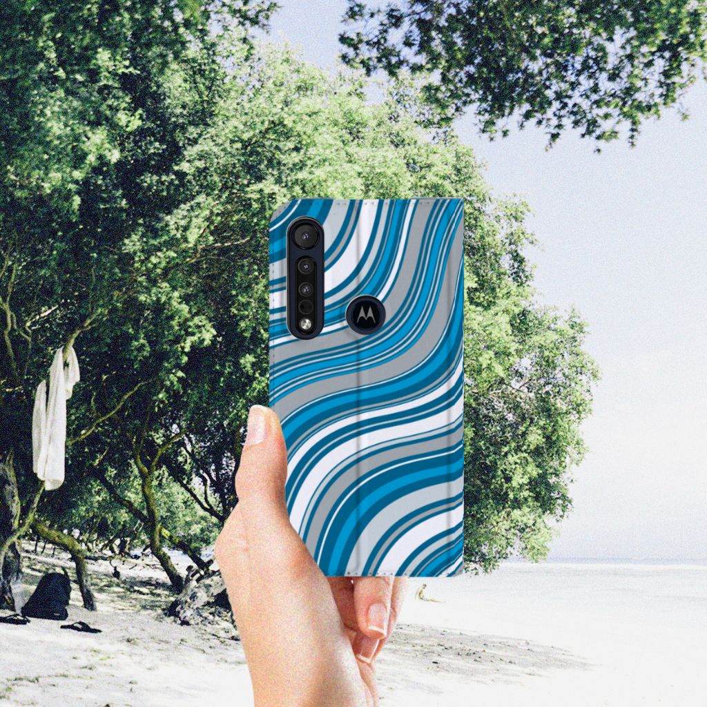 Motorola G8 Plus Hoesje met Magneet Waves Blue