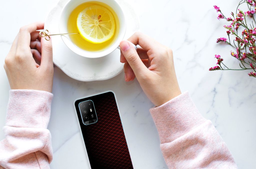 OPPO A94 5G | Reno5 Z TPU bumper Geruit Rood