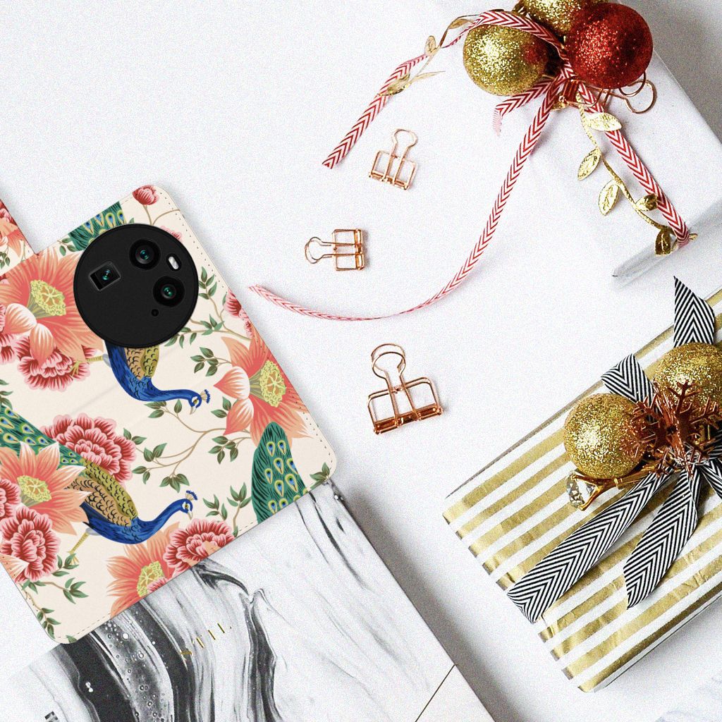 Telefoonhoesje met Pasjes voor OPPO Find X6 Pink Peacock