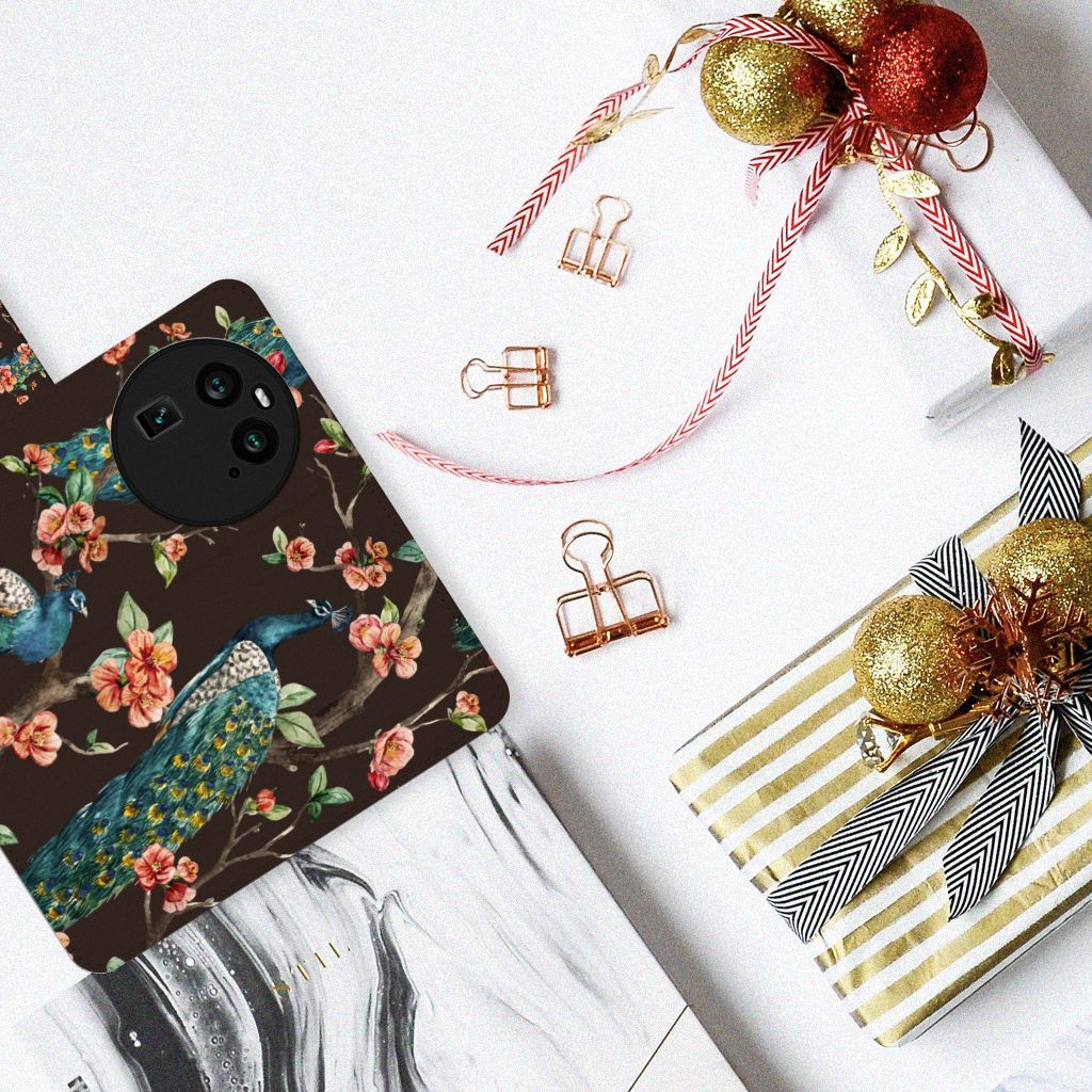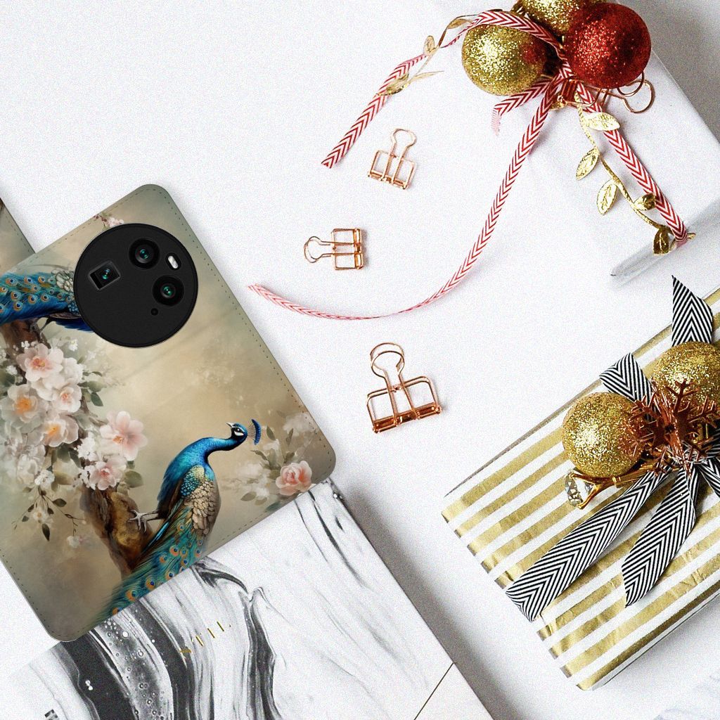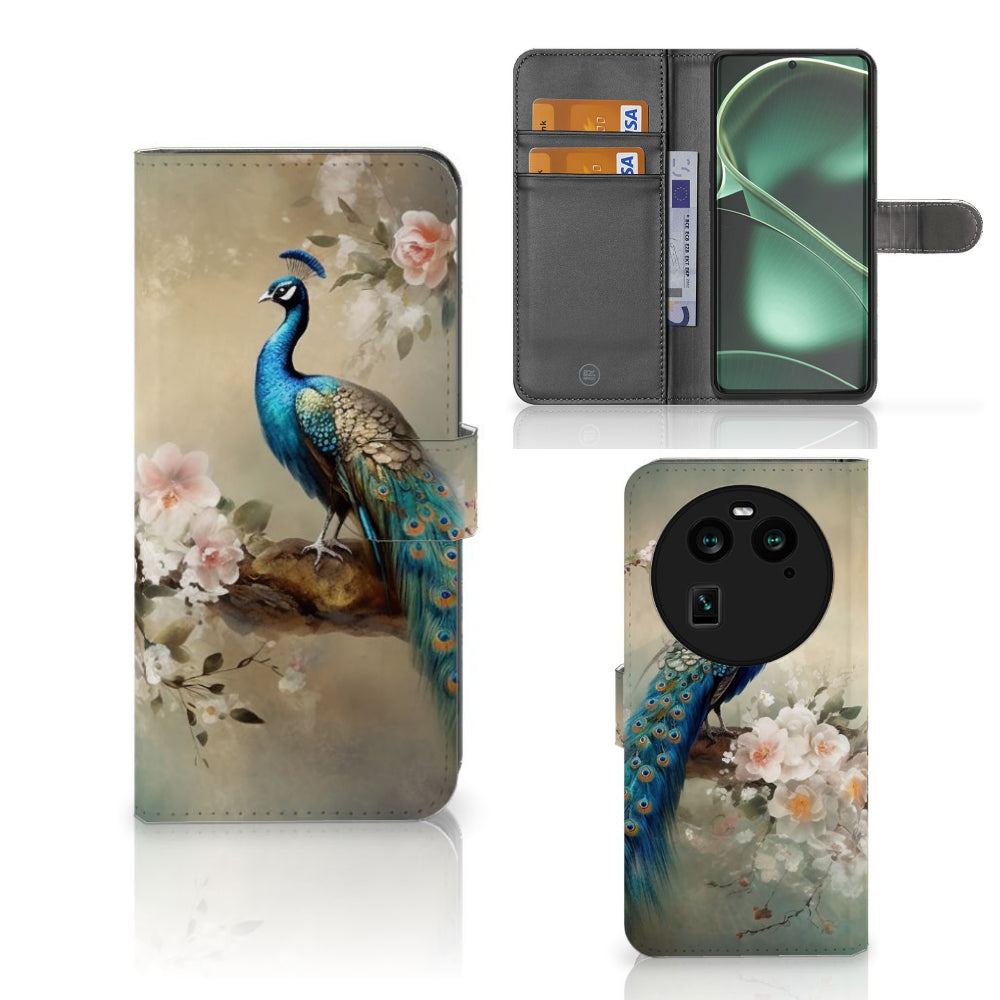 OPPO Find X6 Telefoonhoesje met Pasjes Pauw met Bloemen