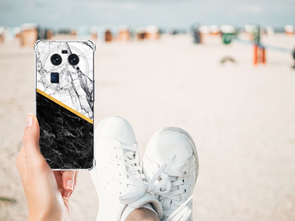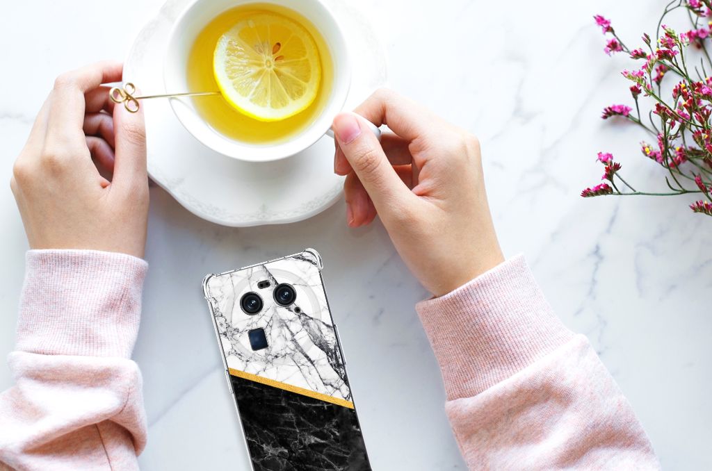 OPPO Find X6 Anti-Shock Hoesje Marmer Wit Zwart - Origineel Cadeau Man
