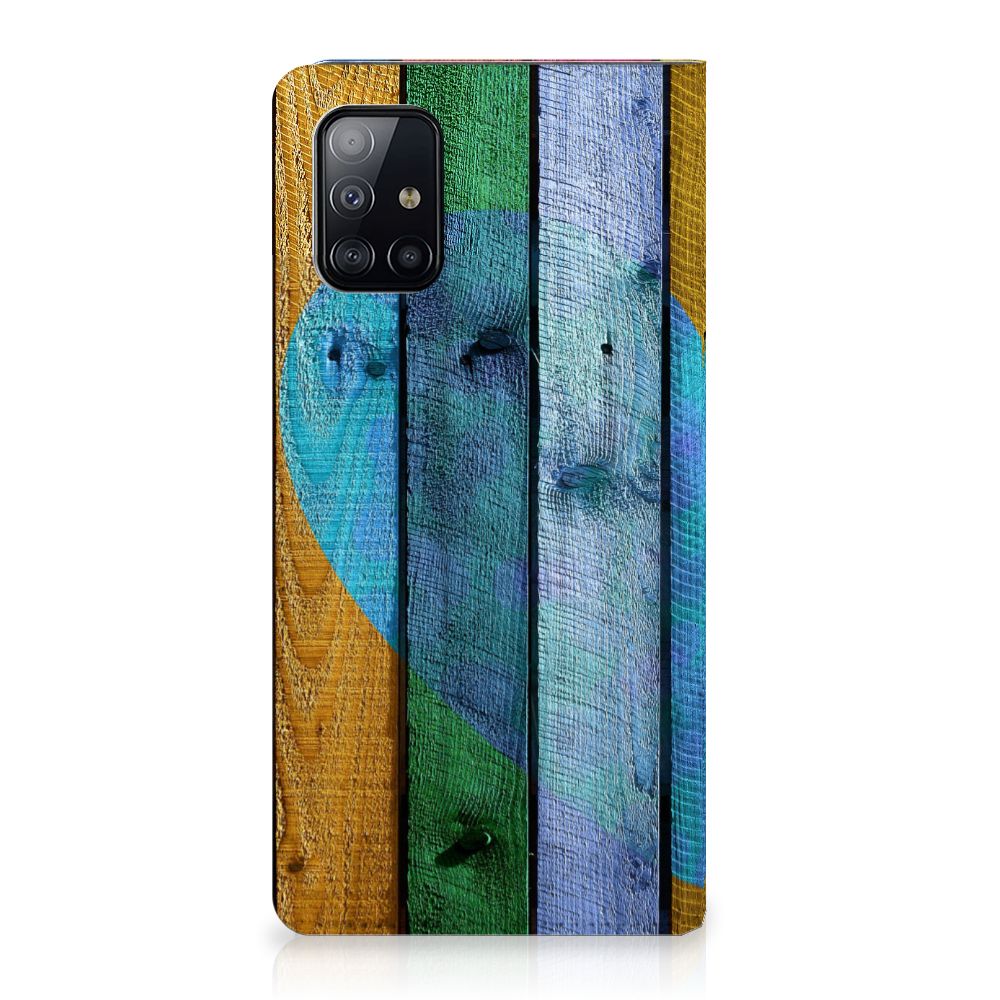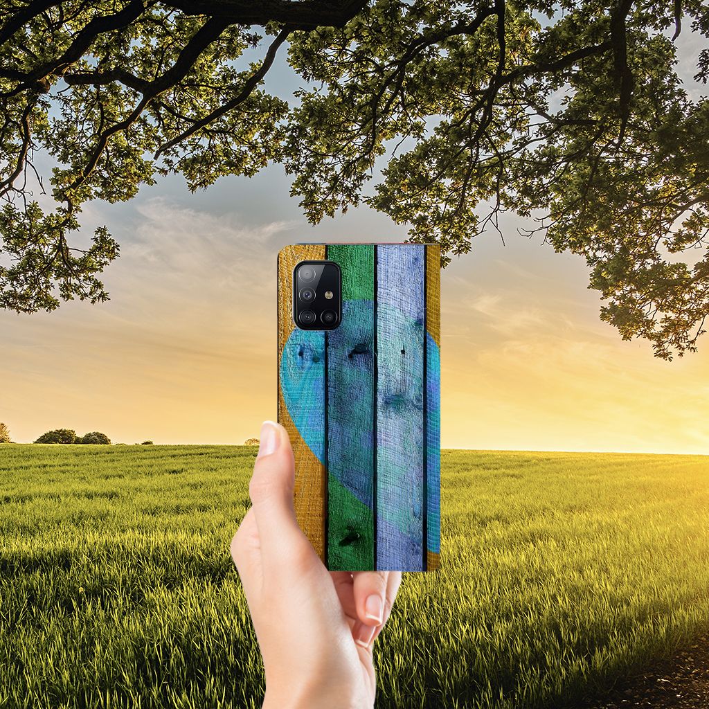 Samsung Galaxy A71 Book Wallet Case Wood Heart - Cadeau voor je Vriend
