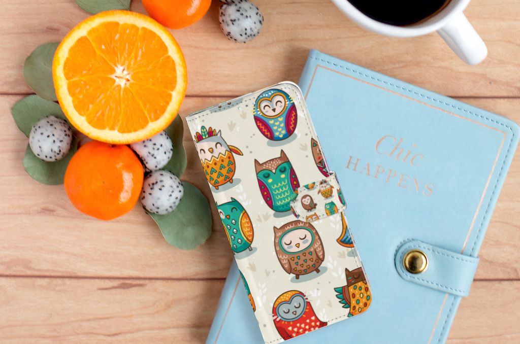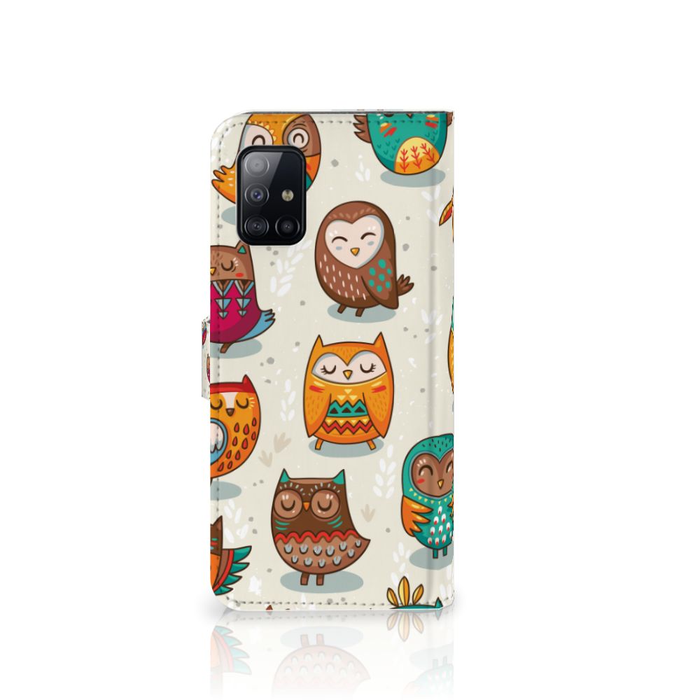 Samsung Galaxy A71 Telefoonhoesje met Pasjes Vrolijke Uilen