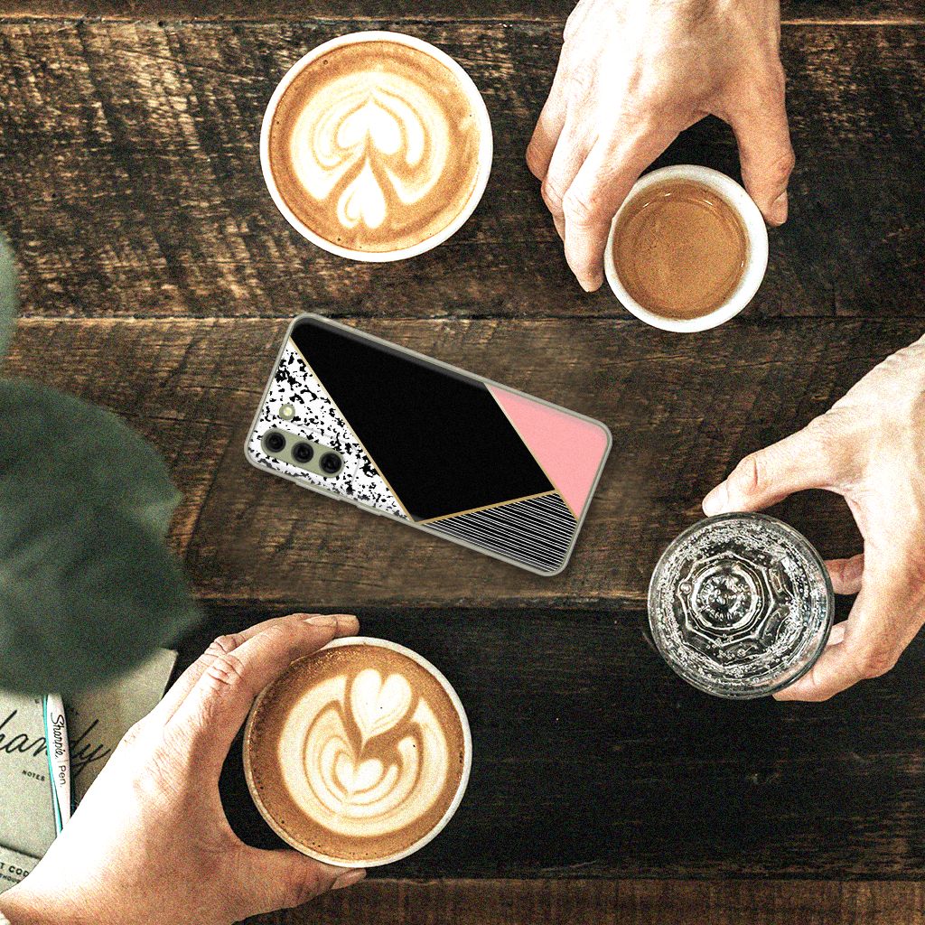 Samsung Galaxy S21FE TPU Hoesje Zwart Roze Vormen