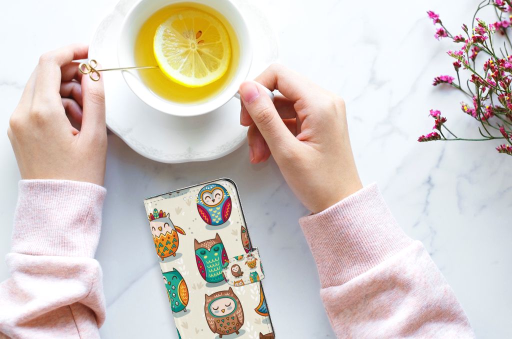 Samsung Galaxy S21 FE Telefoonhoesje met Pasjes Vrolijke Uilen