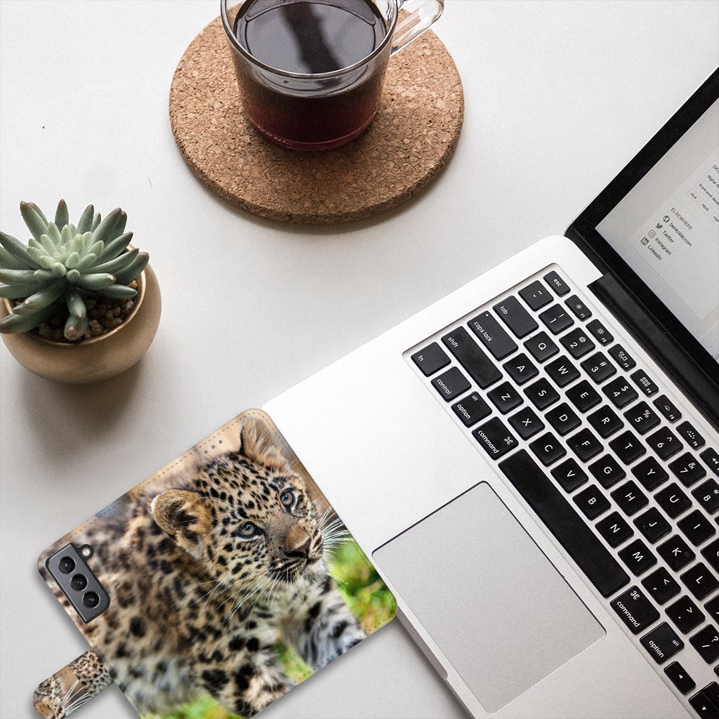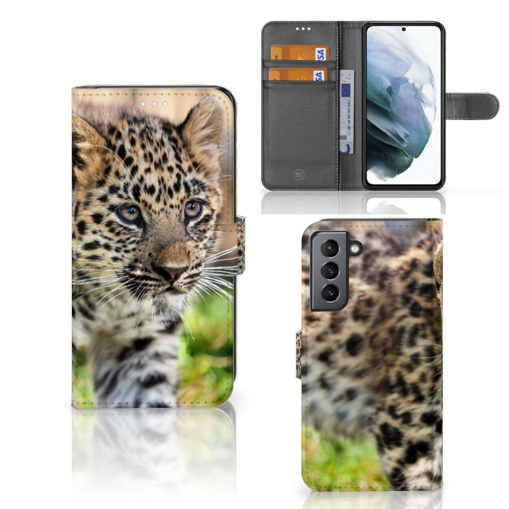 Samsung Galaxy S21 FE Telefoonhoesje met Pasjes Baby Luipaard