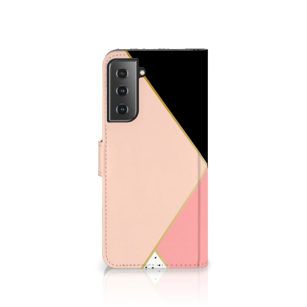 Samsung Galaxy S21 Plus Book Case Zwart Roze Vormen