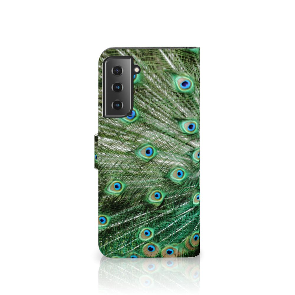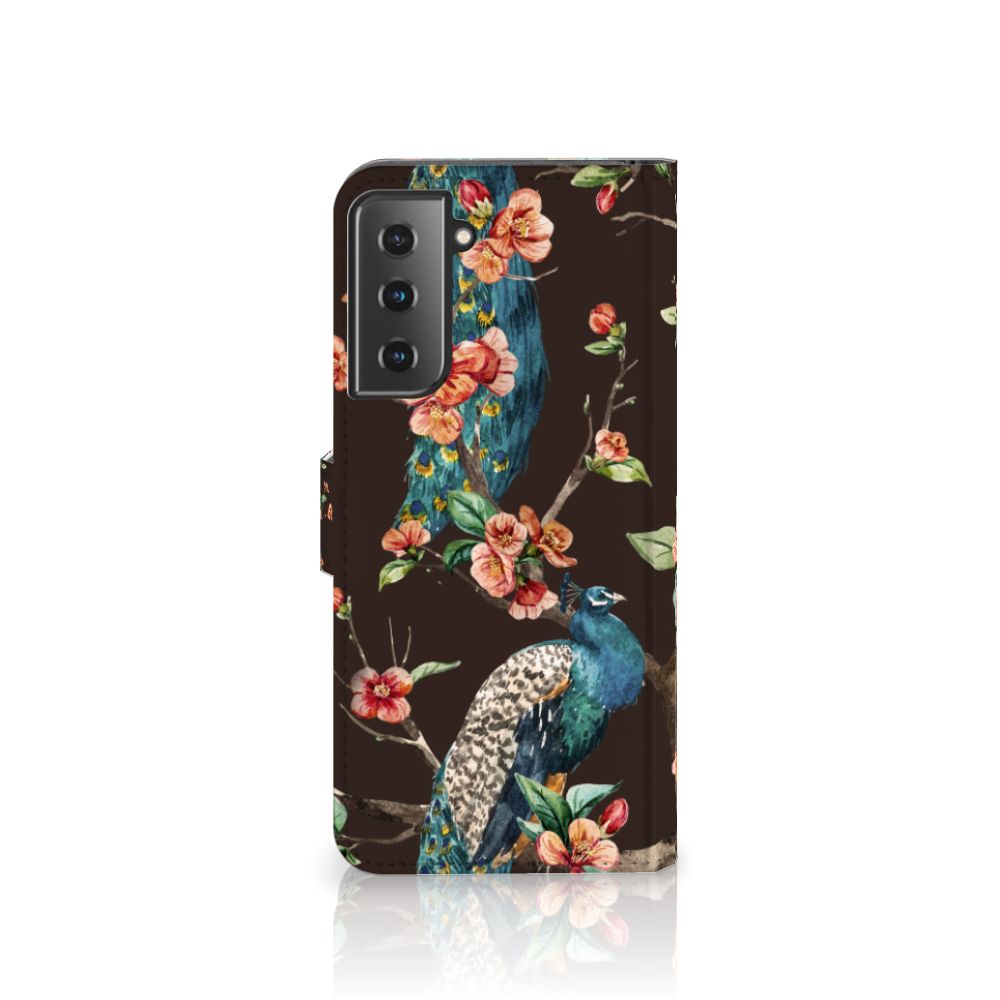 Samsung Galaxy S21 Plus Telefoonhoesje met Pasjes Pauw met Bloemen