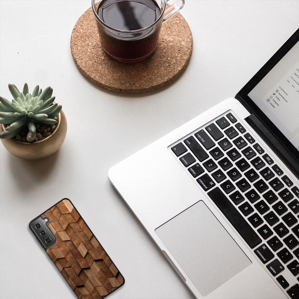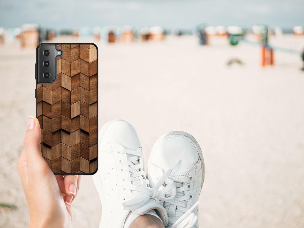 Houten Print Telefoonhoesje voor Samsung Galaxy S21 Plus Wooden Cubes