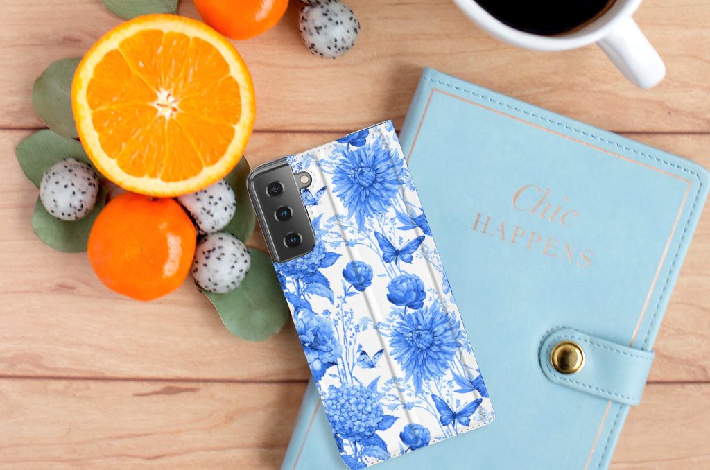 Smart Cover voor Samsung Galaxy S21 Plus Flowers Blue